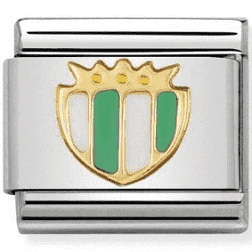030204/36D Classic FOOTBALL SHIELD,S/steel,enamel,18k gold Green_White)