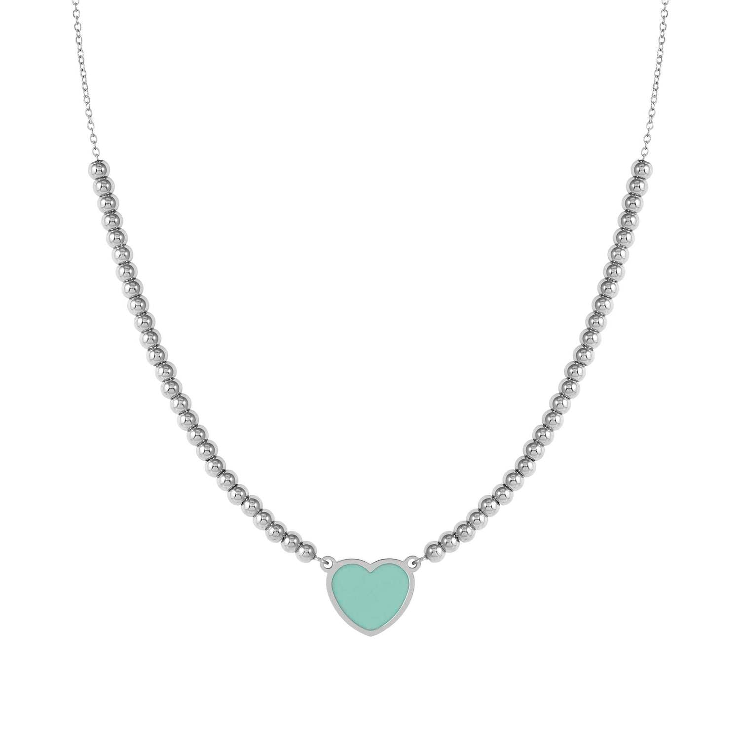 EMOSFERE Steel Chain & Beaded Green Enamel Heart Necklace 134204/002