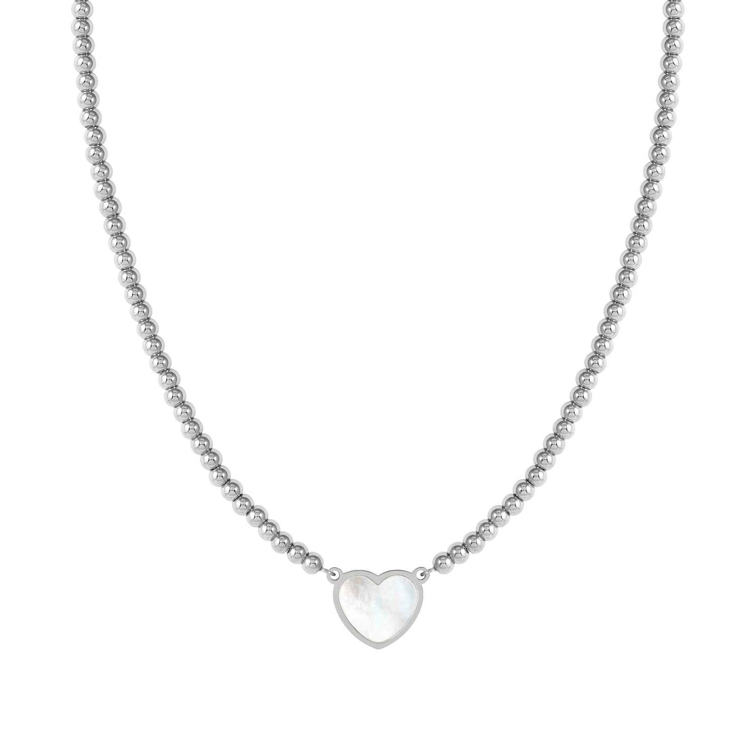 Stainless Steel Full Beaded Necklace with Mother of Pearl Heart Symbol