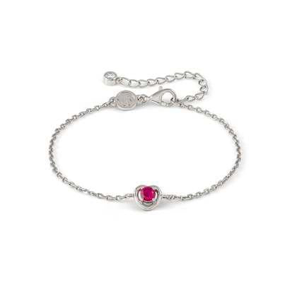 Cosmic Love Sterling Silver Bracelet with Heart Shape & Red CZ Stone Length 19cm, Shortens to 15cm