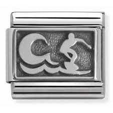 Classic Stainless Steel Link with Sterling Silver Plate & Oxidised finish "Wave with Surfer"