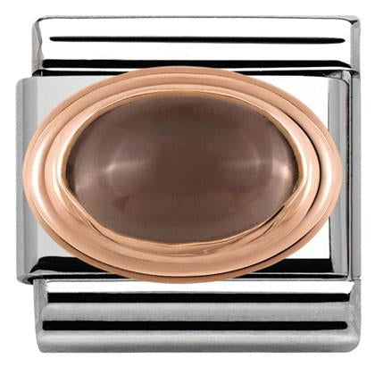 430501/29D Classic OVAL HARD STONES, S/steel,9K rose gold Smoky quartz
