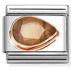 Classic Stainless Steel and 9ct Rose Gold SMOKEY Faceted Drop CZ Stone RIGHT facing Link