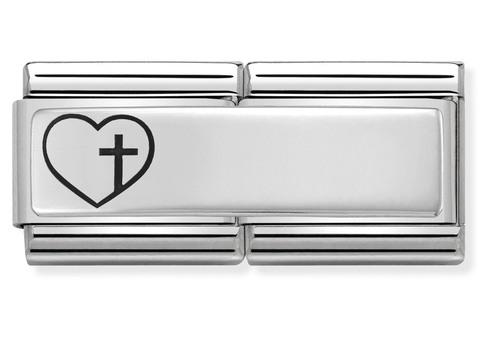 330710/14D CLASSIC DOUBLE SILVER HEART WITH CROSS