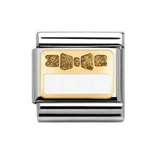 Composable Classic ELEGANCE (engraved) in stainless steel? 18k gold and enamel (44_Gold Bow on White plate)